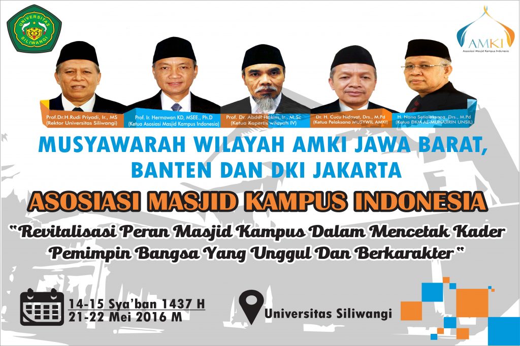 Dalam rangka meningkatkan kualitas dan manajemen pengelolaan masjid kampus, Asosiasi Masjid Kampus Indonesia akan mengadakan Musyawarah Wilayah AMKI Jawa Barat, DKI, dan Banten yang akan dilaksanakan pada : Hari/Tanggal : Sabtu, 21 Mei 2016 pukul 09.00 WIB s/d Ahad, 22 Mei 2016 pukul 12.00 WIB Agenda           : Musyawarah Wilayah (Muswil) AMKI Jawa Barat, DKI, […]
