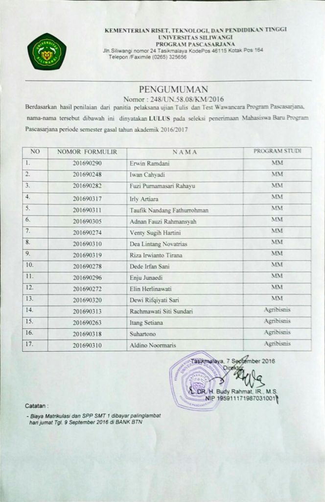 Seminar Nasional (SINESTION) PEMATERI Entrepreneur muda OKIN/Niko Owner Sate Taichan “Goreng” Dicky Chandra sebagai pemateri kedua! Turut mengundang : Bapak H. Deddy Mizwar (Wakil Gubernur Jawa Barat) TANGGAL PELAKSANAAN Hari      : Kamis Tgl          : 10 november 2016 Waktu   : 08.00 s.d selesai Tempat : gd. Mandala UNIVERSITAS SILIWANGI HTM Mahasiswa  : […]